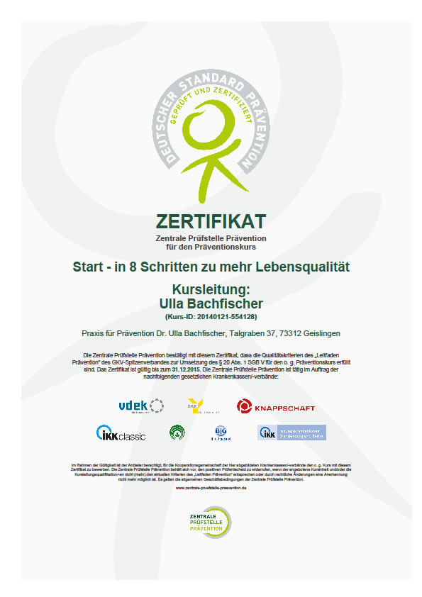 Auch alle anderen gesetzlichen Krankenkassen bezuschussen den Kurs.