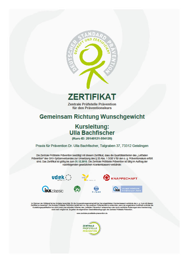 "Gemeinsam Richtung Wunschgewicht" ist ein ganzheitlich ausgerichteter Kurs mit folgenden Schwerpunkten: ausgewogene Ernährung, Umgang mit Stress, alltagstaugliche Aktivitätssteigerung, dickmachende Gewohnheiten entdecken (z. B. Stress-, Frust- bzw. Belohnungsessen) und ändern.